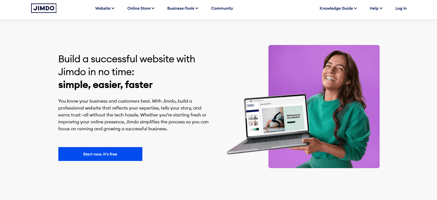 Jimdo to niemiecki kreator stron, który szczególnie dobrze sprawdza się przy tworzeniu sklepów internetowych. Jest ceniony za prostotę i funkcjonalność.